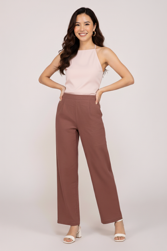 Rose Taupe Solid Women Regular Fit Cotton Trouser