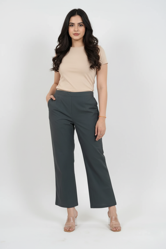 Cement Grey Solid Women Regular Fit Cotton Trouser