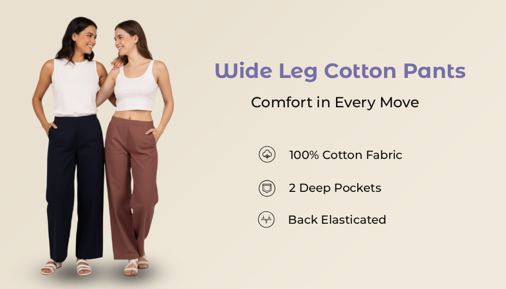 Charcoal Blue Women Wide Leg Cotton Pant -